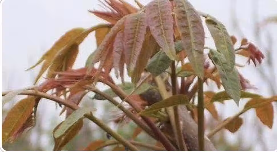 香椿還有「樹上蔬菜」之稱,其嫩芽帶有紫紅色或紅褐色,有特殊香味,常入菜或泡成茶飲。