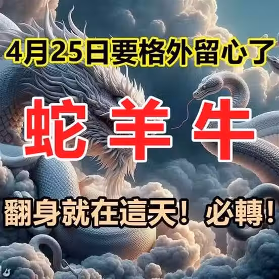 蛇,羊,牛 4月25日要格外留心了,翻身就在這天