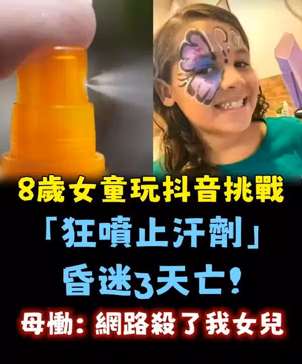 8歲女童玩抖音挑戰「狂噴止汗劑」昏迷3天亡!母慟:網絡殺了我女兒