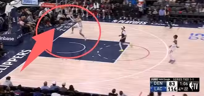 這哥們全場比賽就只有一次出手就是這一次,隊友納吉搶斷之後把球傳給了他,泰森前場一條龍,身邊沒有任何隊友。就是一個完完全全的空籃。5米以內沒有快船球員,他們領先了30多分,想著乾脆也不防守了,結果泰森面對空籃,一人單挑籃筐的情況下把球扔出去了,或者說是脫手了!