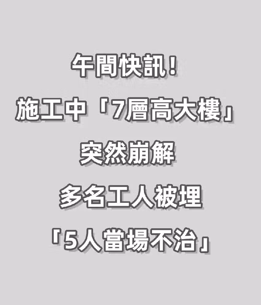 午間快訊!施工中「7層高大樓」突然崩解 多名工人被埋「5人當場不治」