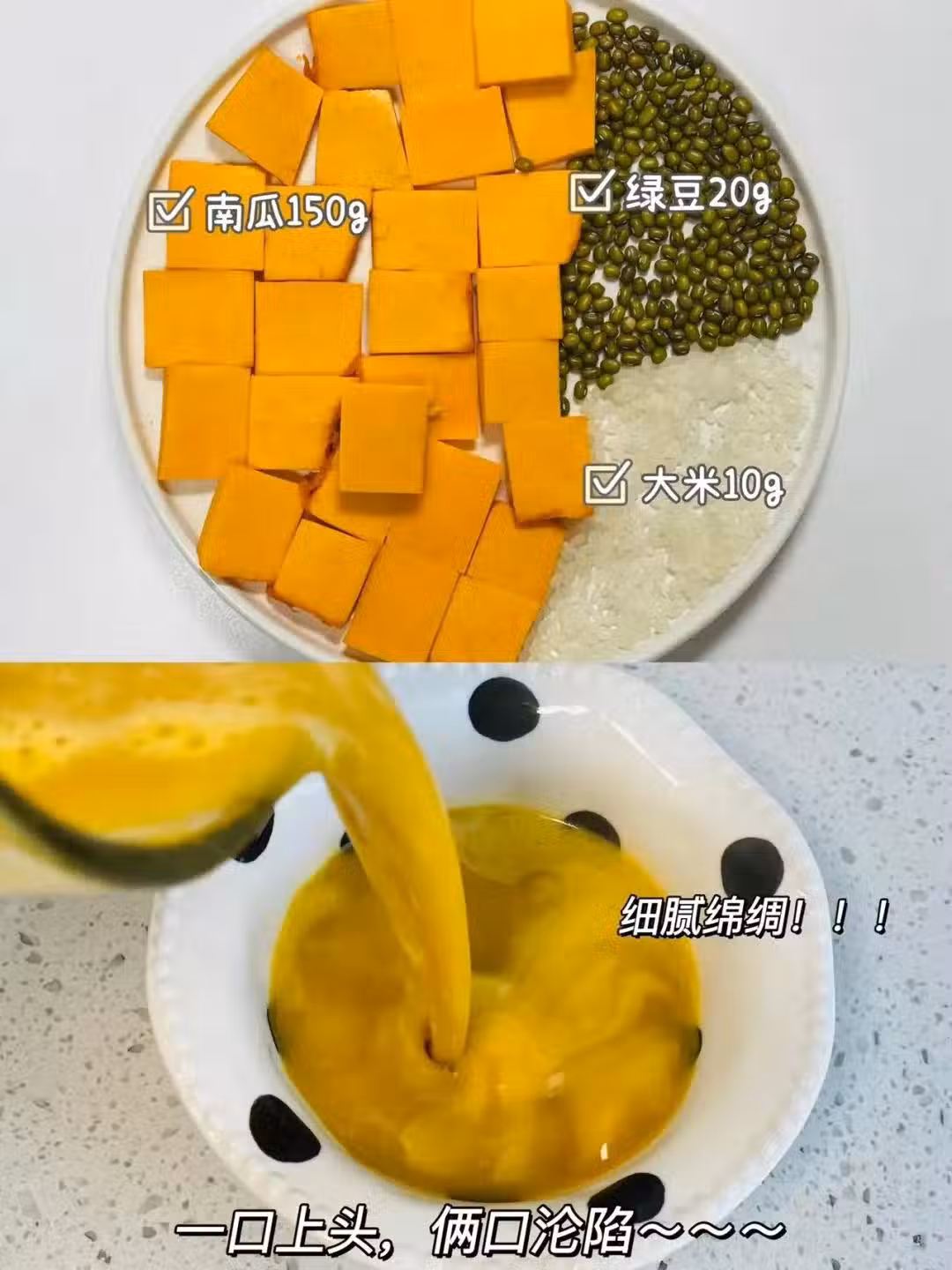 ☑️食材:南瓜150g、綠豆20g、大米10g