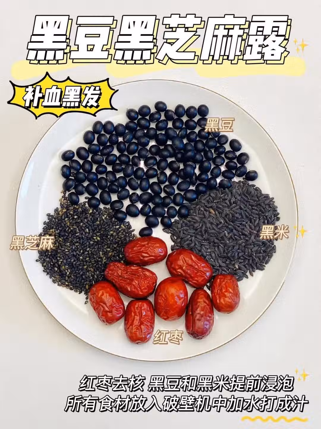 ☑️食材:黑豆+黑芝麻+黑米+紅棗