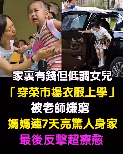 家裡有錢但低調!讓女兒「穿菜市場衣服上學」被老師嫌窮 媽媽「連續7天亮驚人身家」最後反擊超療愈