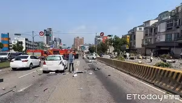 路旁盆栽倒塌,機車橫臥路面,汽車零件四處飛散,猶如遭受轟炸的戰場。所有傷者均被送往光田向上醫院救治。