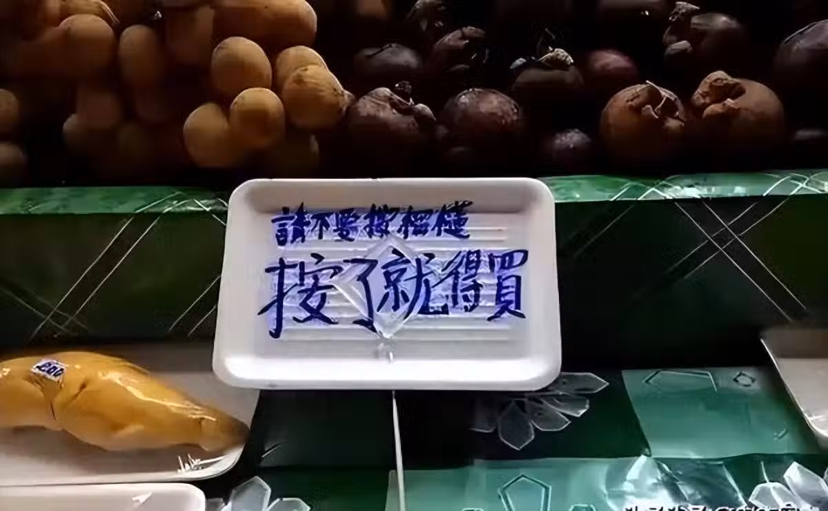 而這一切,竟是因為攤主們親手貼上的那句中文標語:「請勿觸摸水果,按了就得買!」