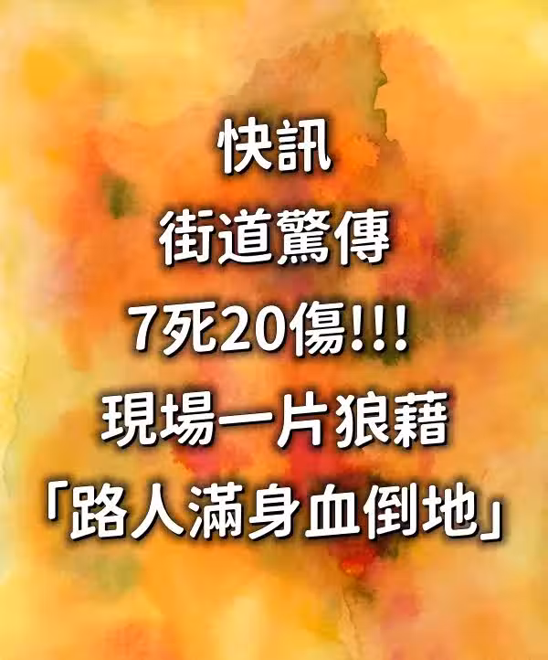 快訊/街道驚傳7死20傷!!! 現場一片狼藉「路人滿身血倒地」