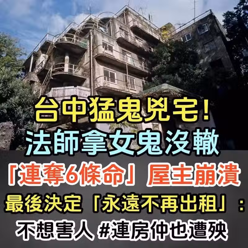 台中猛鬼凶宅!法師拿女鬼沒轍「連奪6條命」屋主崩潰,最後決定「永遠不再出租...」:不想害人 #連房仲也遭殃