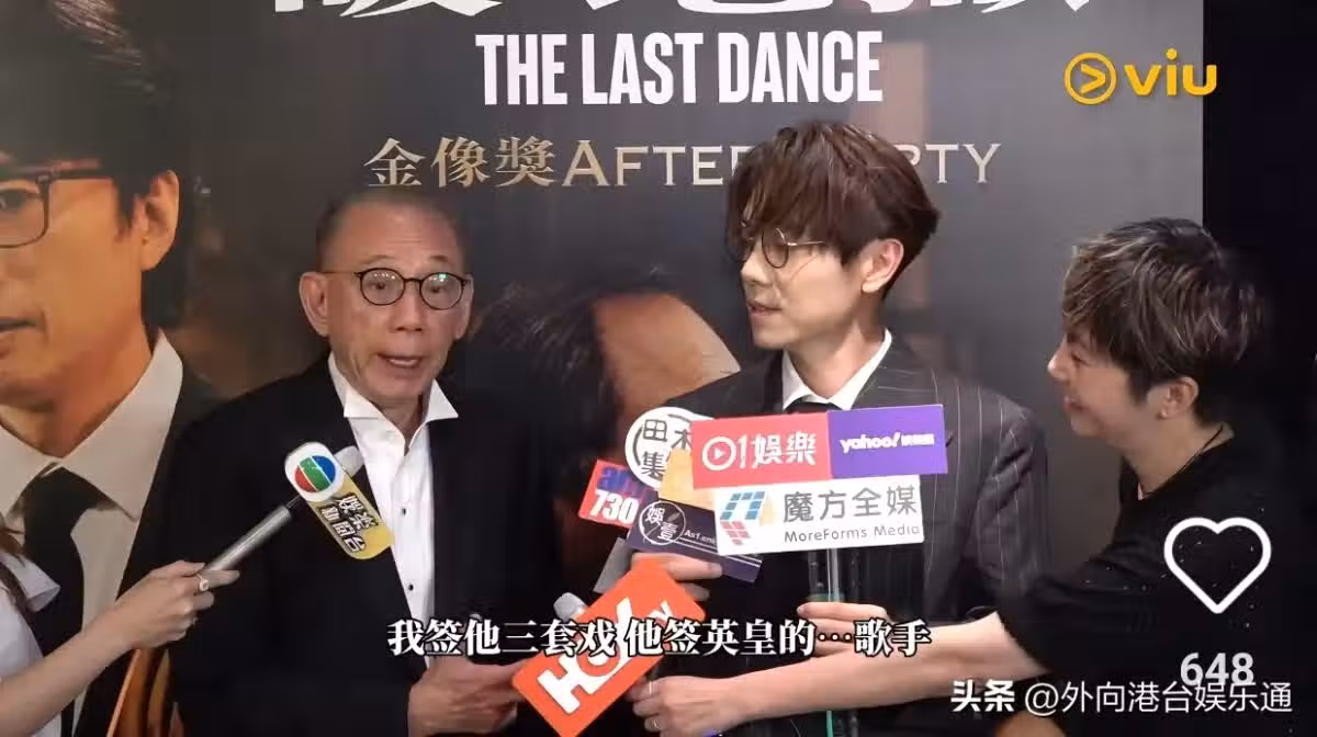 但現場記者不願就此結束,連忙詢問英皇是否會開一部戲給林家謙拍。楊受成回答道:「好,可以啊!條件是這樣的,我可以給他開三部戲,但他要簽約英皇做歌手。」
