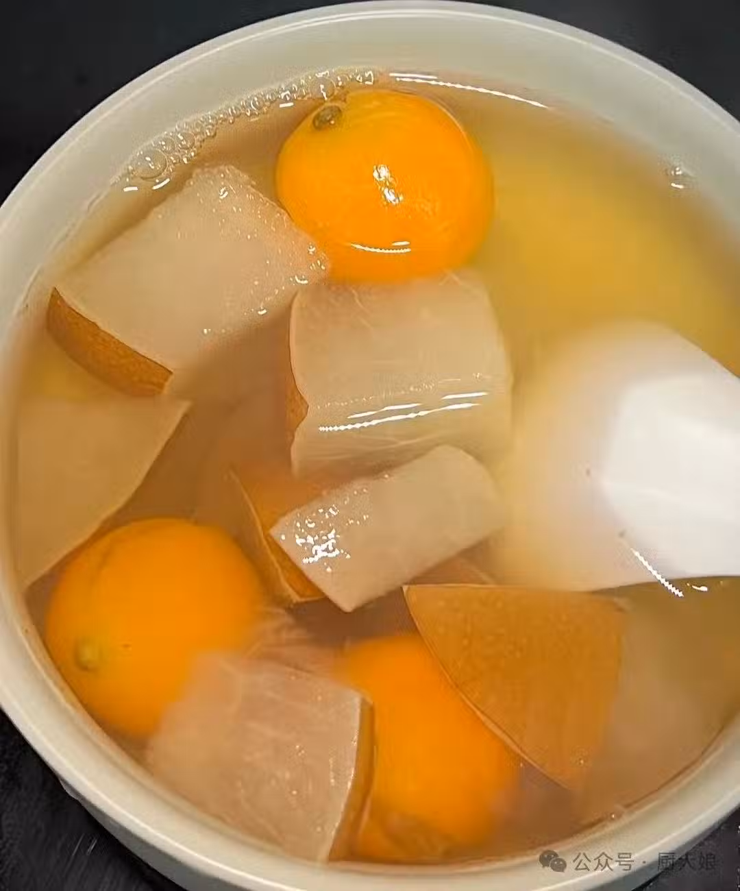 來一碗暖暖的百合金桔雪梨湯,清熱潤肺、化痰止咳,寒熱咳都能喝。
