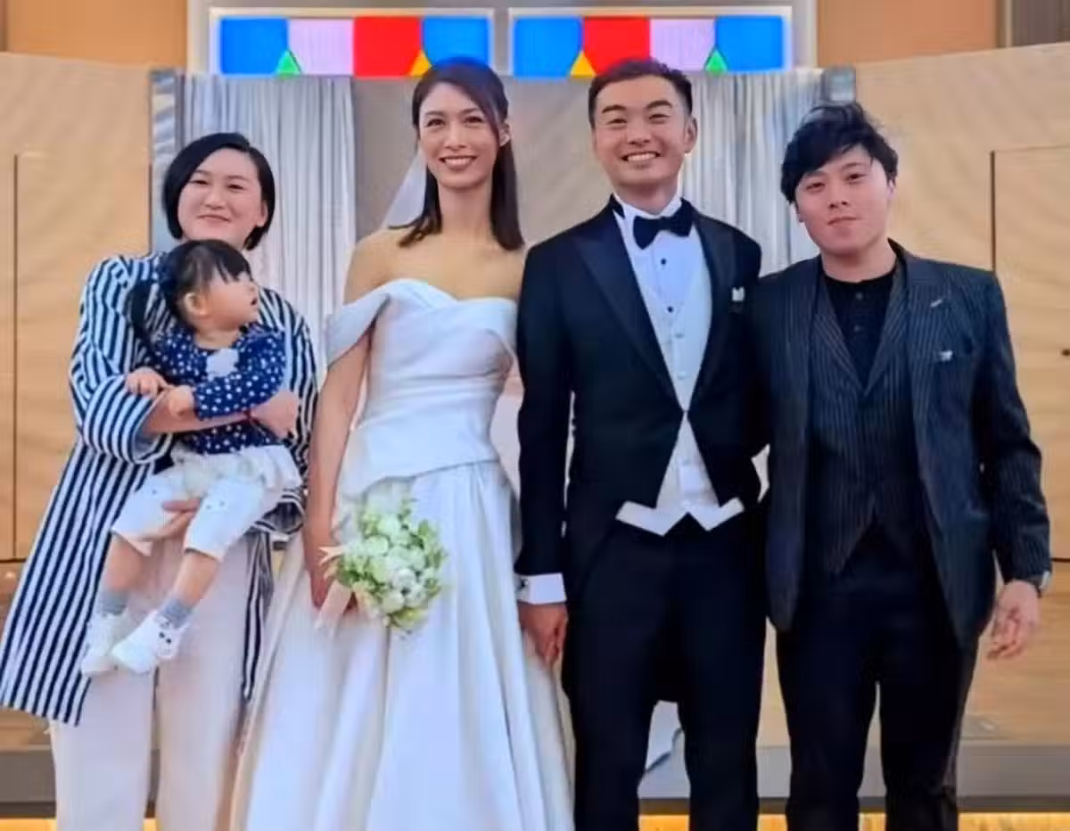 而黎在山的新婚老公,這次也終於罕見曝光。其老公穿著經典的黑白西裝套裝,身材高大又魁梧,很有安全感。