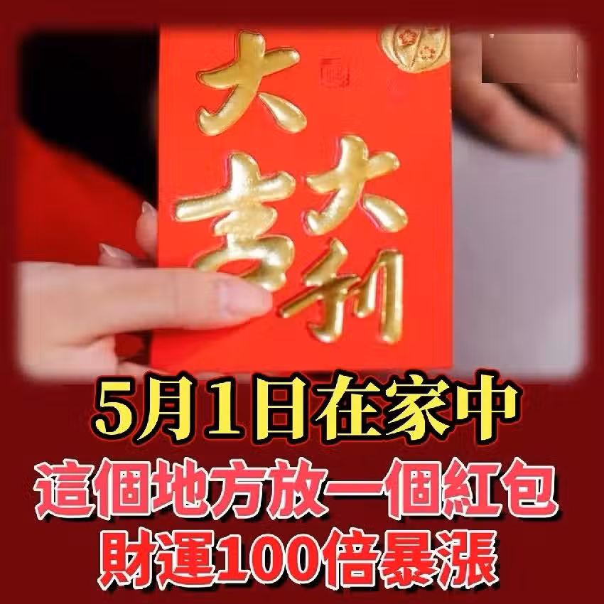 風水師偷偷透露:5月1日在家中這個地方,放一個紅包,竟能讓財運100倍暴漲,好運一路旺到年底!