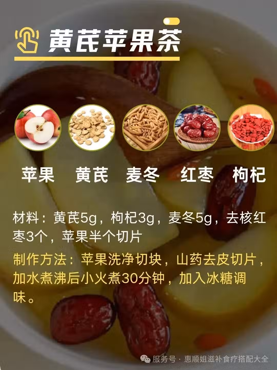 黃芪,紅棗養血,加麥冬來中和一下熱性,紅棗一定要去核哦。換成桂圓肉也可,溫和一些。一周喝3~4次。