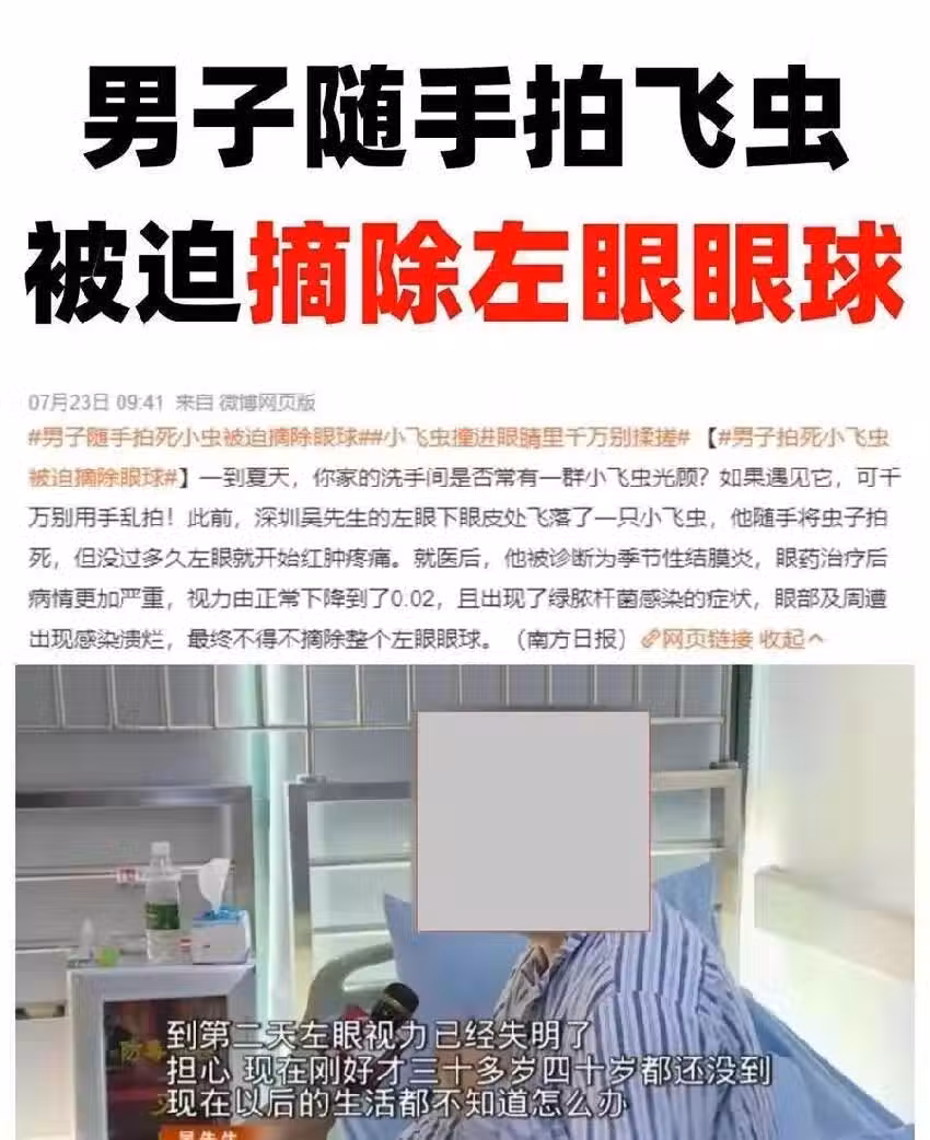 刷到一條新聞說,一隻蛾蚋飛停在一男子的眼皮處,這位男子「啪」