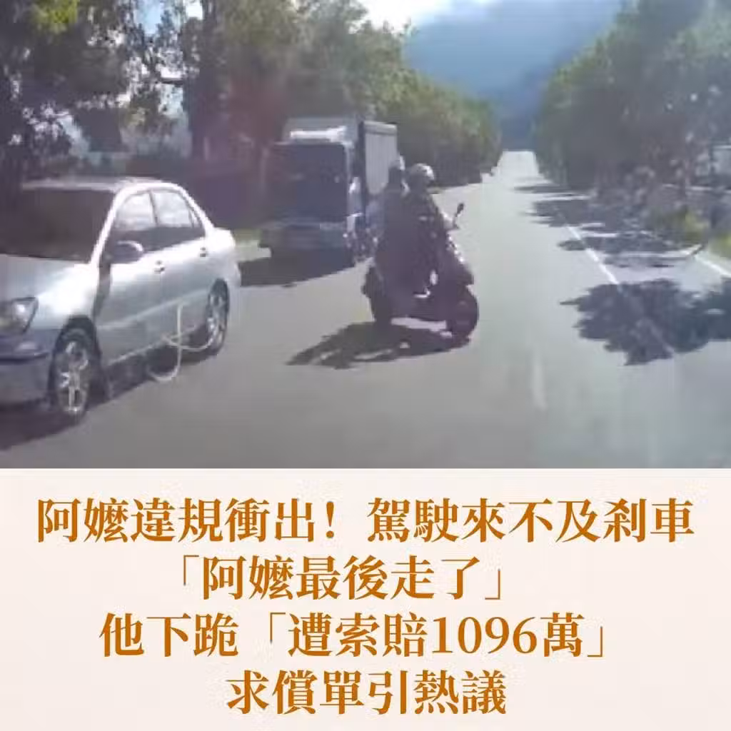 阿嬤違規衝出!駕駛來不及剎車「阿嬤最後走了」 他下跪「遭索賠1096萬....」求償單引熱議