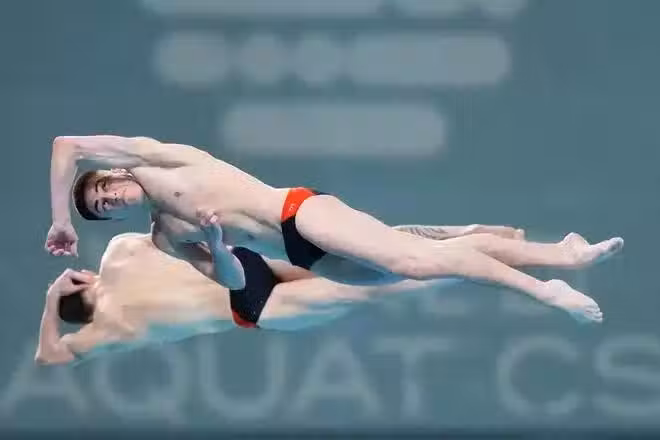 在第三輪開始進入到自選動作,中立運動員身份參賽的俄羅斯組合什列伊赫爾/捷爾諾夫第三跳發揮出色,同步性和入水都非常好,很驚艷的一跳,拿到91.8的高分,程子龍/朱子鋒這一輪在水花沒有壓死,78.72分,落後3分排名第二。