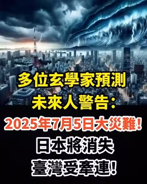 多位玄學家預測、未來人警告:2025年7月5日大災難!日本將消失,台灣受牽連!!
