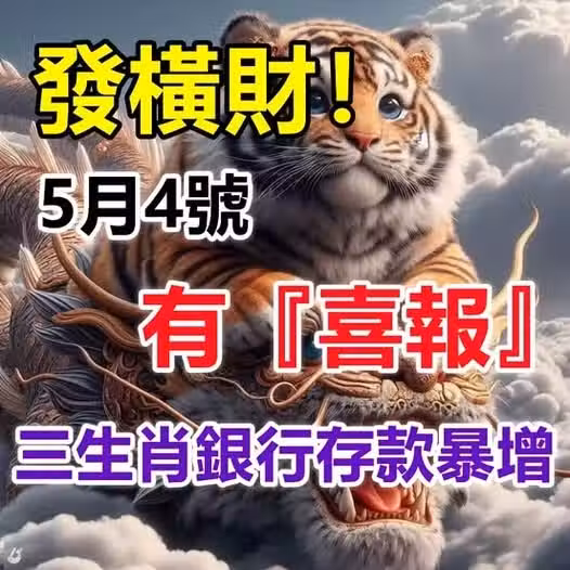 5月4號有喜報,發橫財,好運擋不住,銀行存款暴增的生肖!