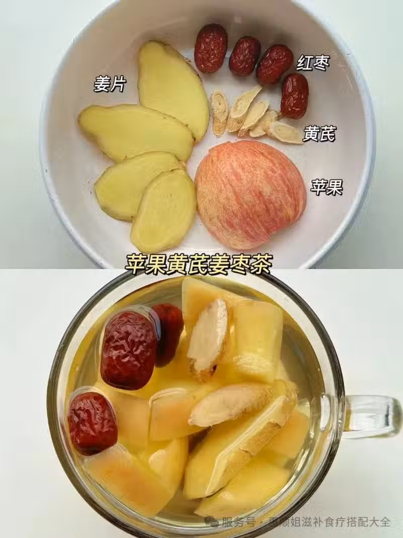 蘋果🍎1個➕黃芪10克➕薑片🫚3片➕紅棗3顆