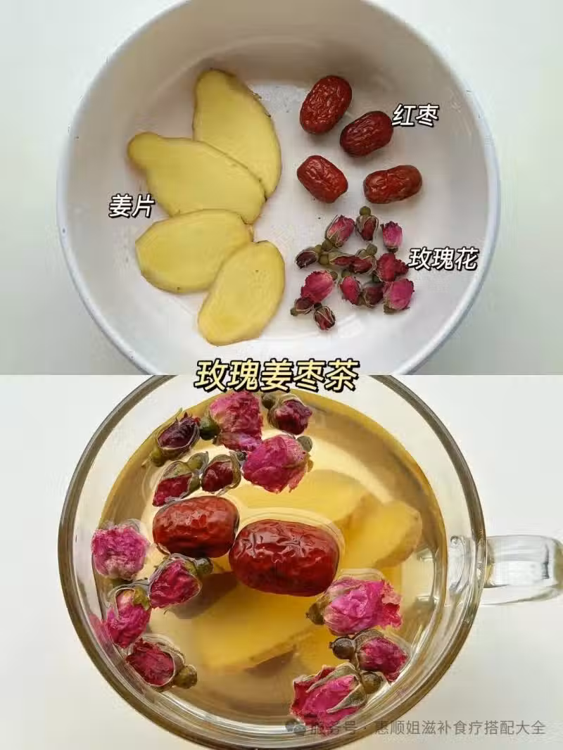 玫瑰花🌹1朵➕薑片🫚3片➕紅棗3顆