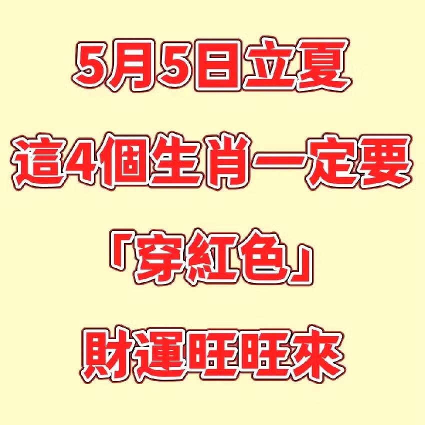 📅 5月5日立夏,這4個生肖一定要「穿紅色」,財運旺旺來!🔥