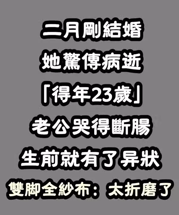 二月剛結婚!她驚傳病逝「得年23歲」老公哭斷腸 生前有異狀「雙腳全紗布」:太折磨了