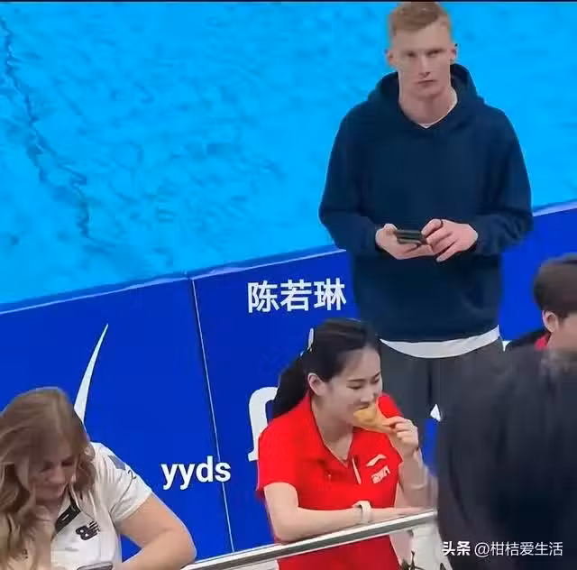 麵包的個頭著實不小,陳教練大大地咬上一口,卻未能將其完全咽下。於是,他一口接著一口,吃得那叫一個投入。進食的過程中,他還不時左顧右盼,那模樣,恰似一個偷偷享受美食的孩童,甚是可愛。