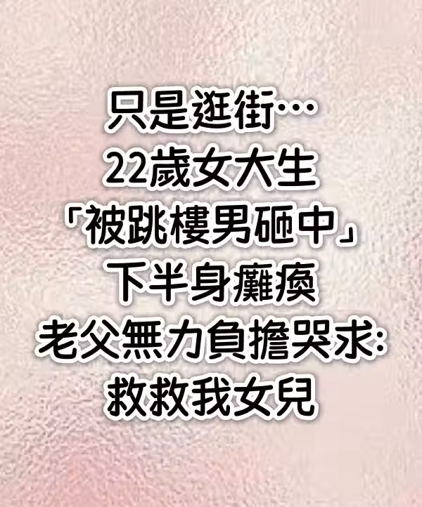 只是逛街…22歲女大生「被跳樓男砸中」下半身癱瘓 老父無力負擔哭求:救救我女兒