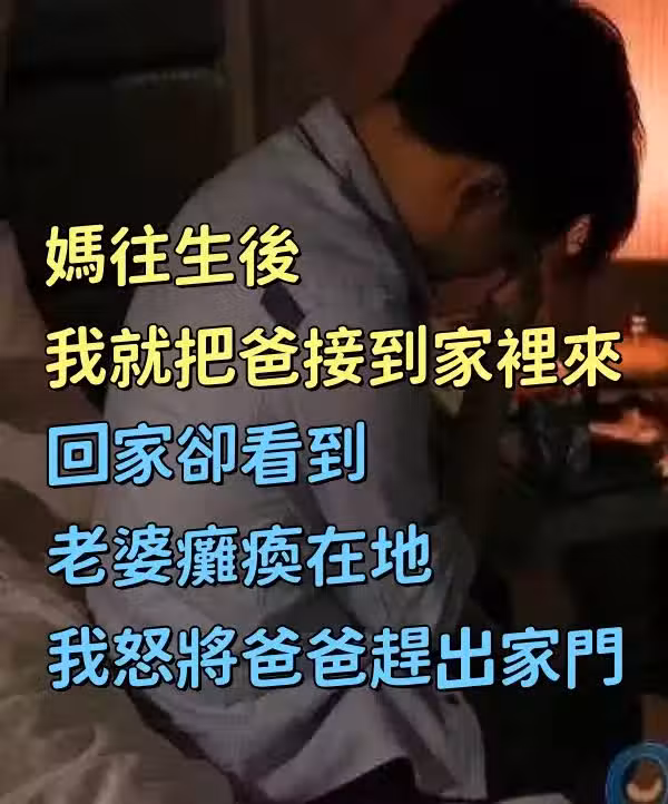 媽往生後我就把爸接到家裡來, 回家卻看到老婆癱瘓在地,我怒將爸爸趕出家門...