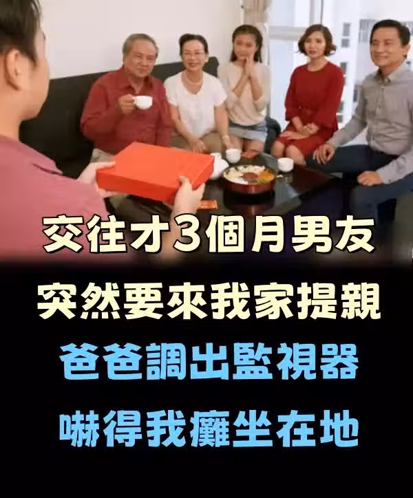 才交往3個月,男友突然要來我家提親,爸爸調出監視器,嚇得我癱坐在地!