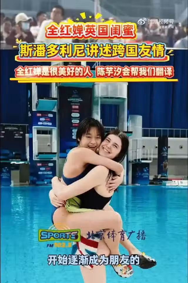 有趣的是,全紅嬋的隊友陳芋汐經常主動幫忙翻譯,架起了她們之間的溝通橋樑。這段跨越國界的友情。