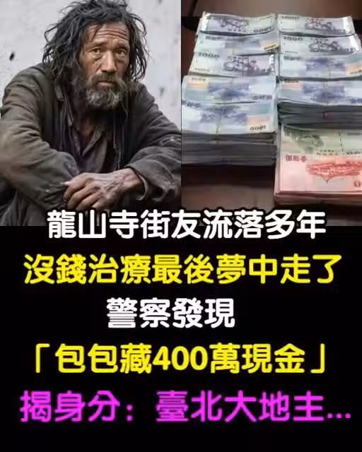 沒錢治療!龍山寺街友流落多年「最後睡夢中走了」 警察發現「包包藏400萬現金」揭身份:台北大地主...