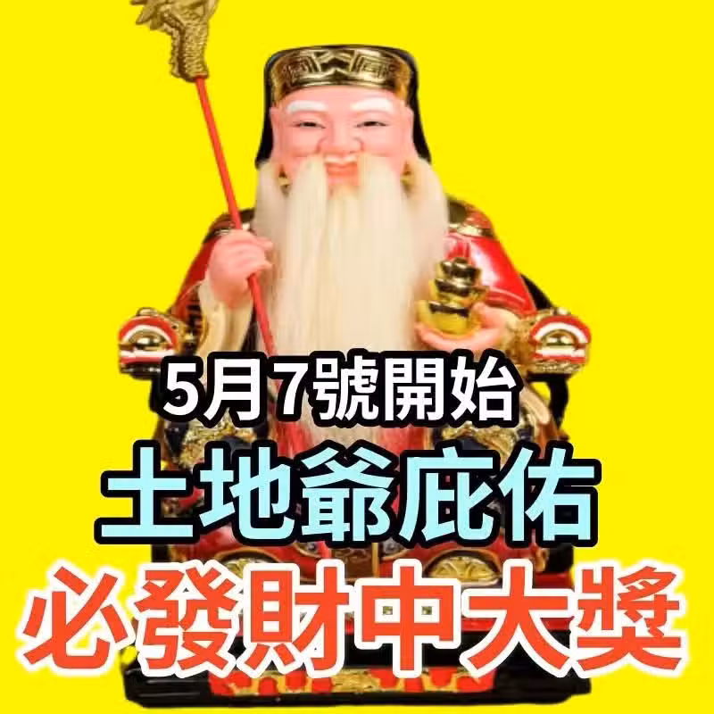 5月7號開始運勢上上籤,土地爺庇佑,四生肖必發財中大獎。