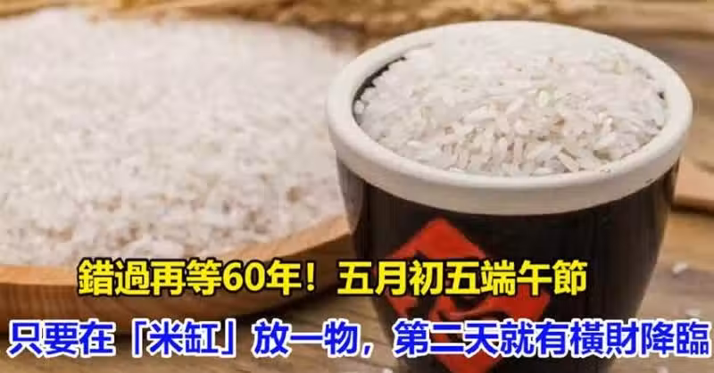 60年一遇!五月初五端午節,只要在「米缸」放一物,第二天就有橫財降臨,好運一路旺到底