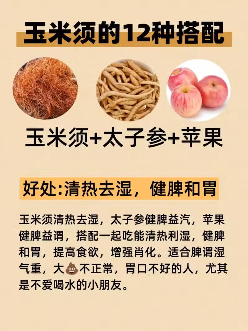 12. 玉米須+太子參+蘋果:太子參益氣健脾,蘋果生津止渴,養生又美味 。
