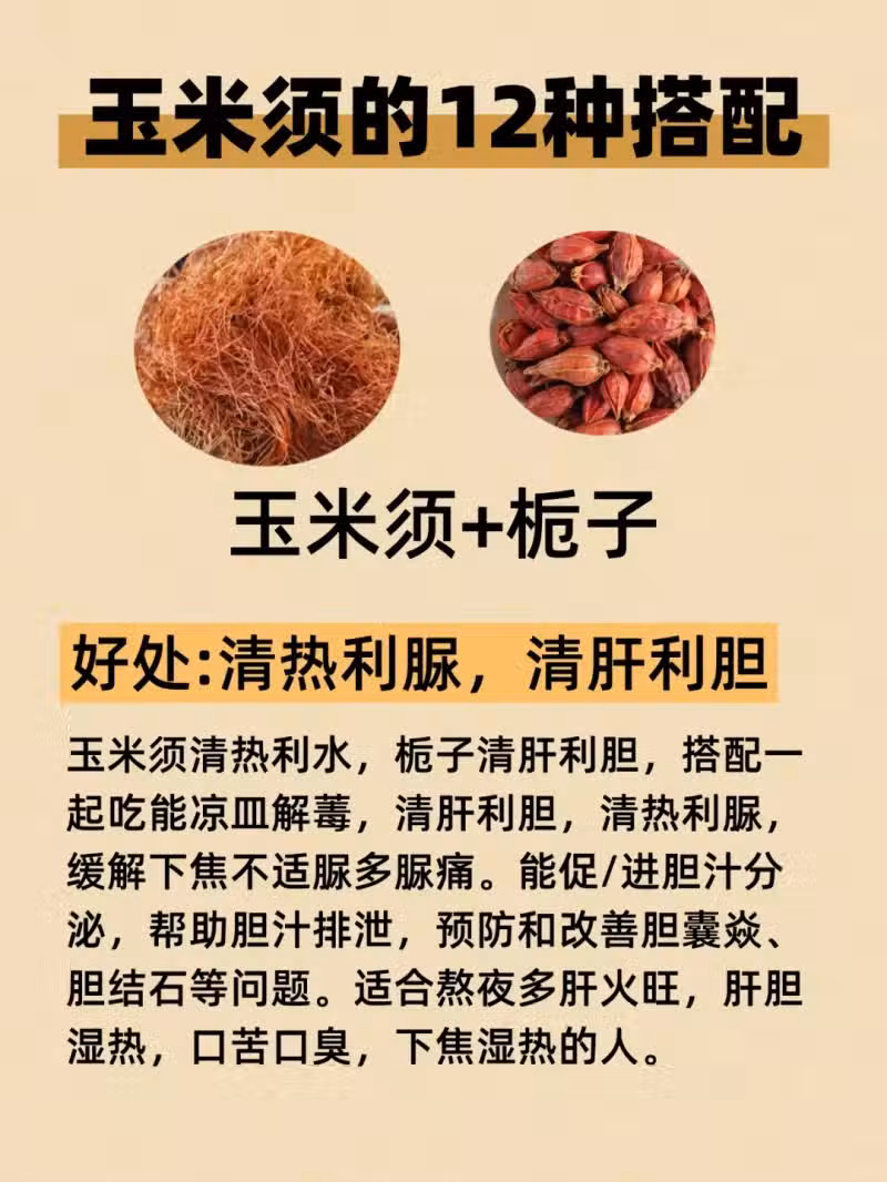 4. 玉米須+梔子:梔子瀉火除煩,二者搭配,強力祛火 。