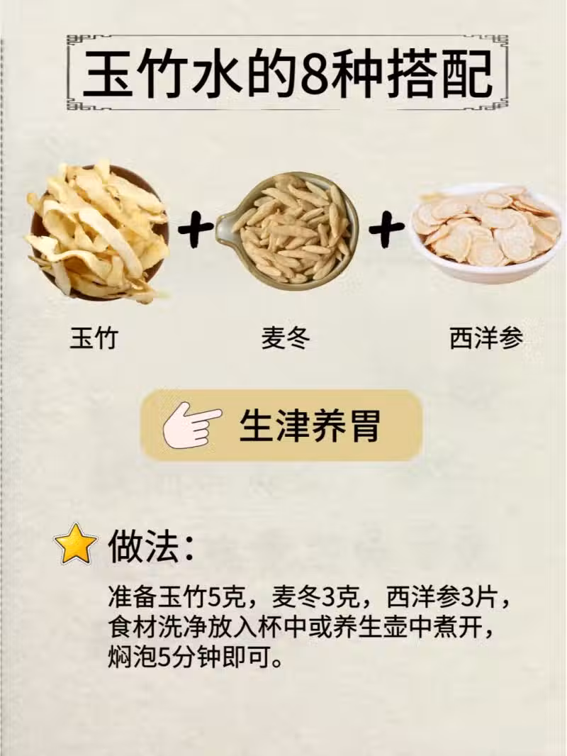 2. 玉竹+麥冬+西洋參:專為你的腸胃打造,生津養胃,吃再多美食也不怕腸胃鬧彆扭 。