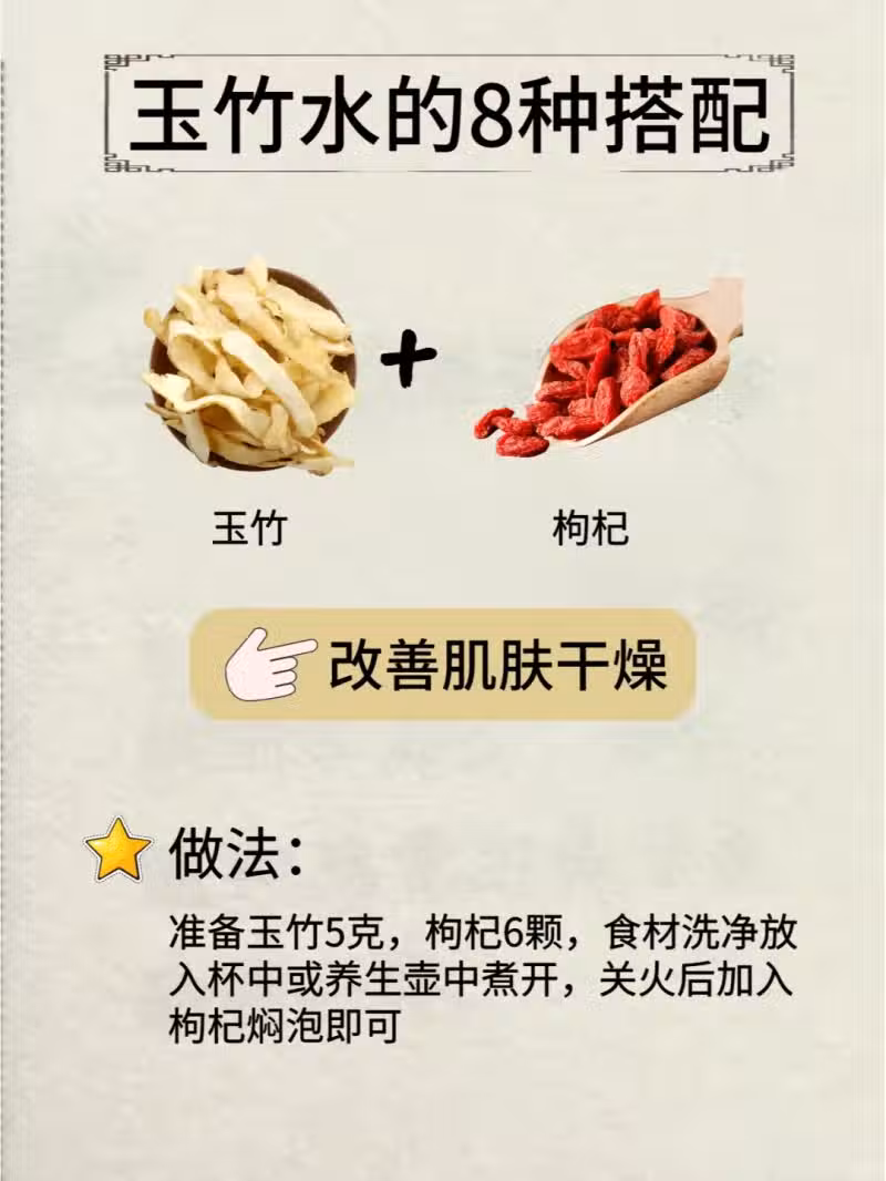 8. 玉竹+枸杞:直擊肌膚乾燥難題,讓你的皮膚喝飽水,重回嫩滑 。