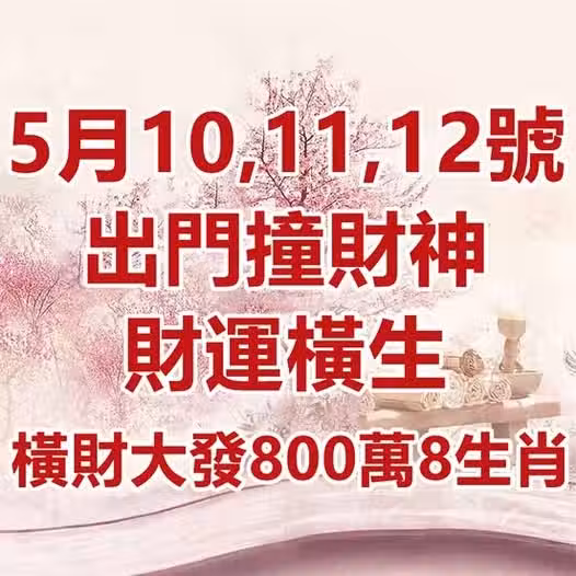 5月10,11,12號出門撞財神,財運橫生,橫財大發的八生肖!