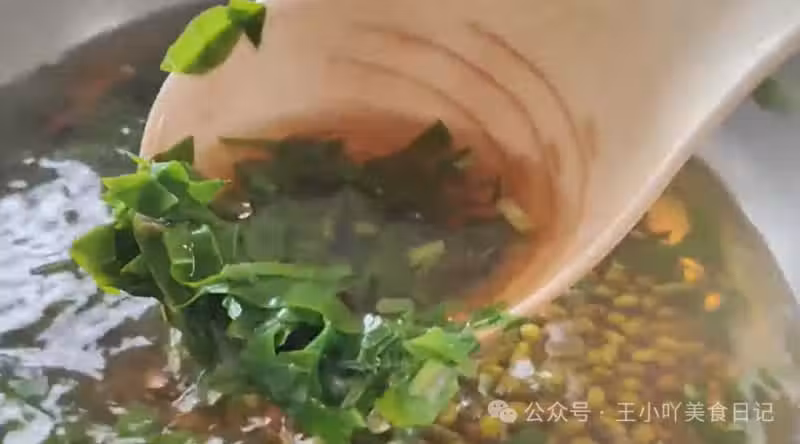 蓋上鍋蓋,再次開小火煮 5 分鐘。在煮的過程中,你會聞到一股清新的香氣從鍋中散發出來,那是車前草和綠豆混合的獨特味道。5 分鐘後,關火出鍋。