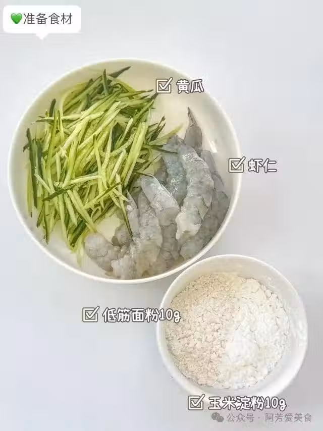 食材:蝦仁100g、黃瓜半根、雞蛋1個