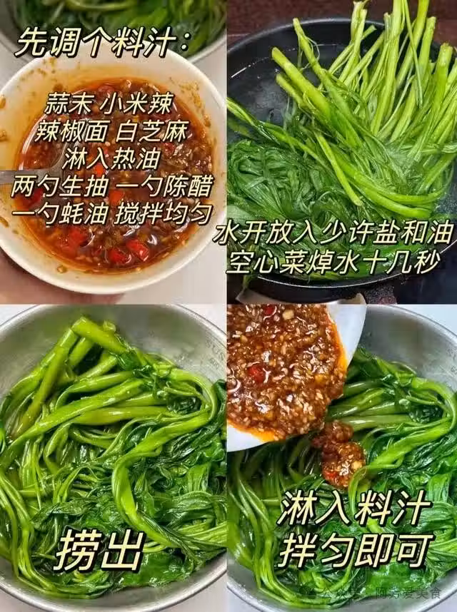 2.蒜末小米辣用熱油激香,加生抽香醋拌勻澆上。
