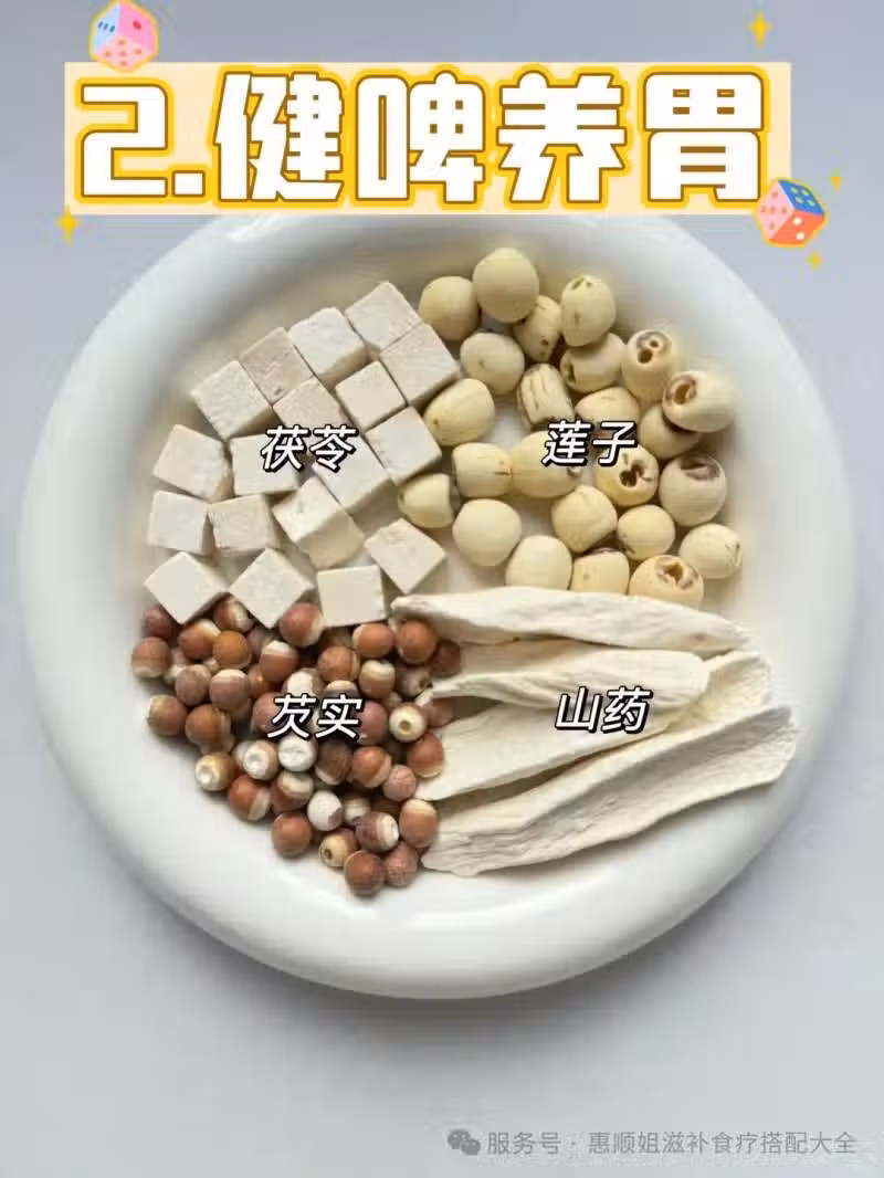 食材:蓮子10克、茯苓10克、芡實10克、山藥20克