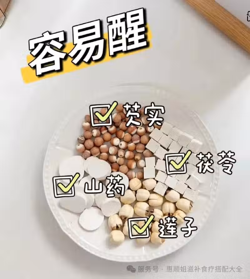 - 食材:蓮子10克➕淮山藥20克➕茯苓10克➕芡實10克