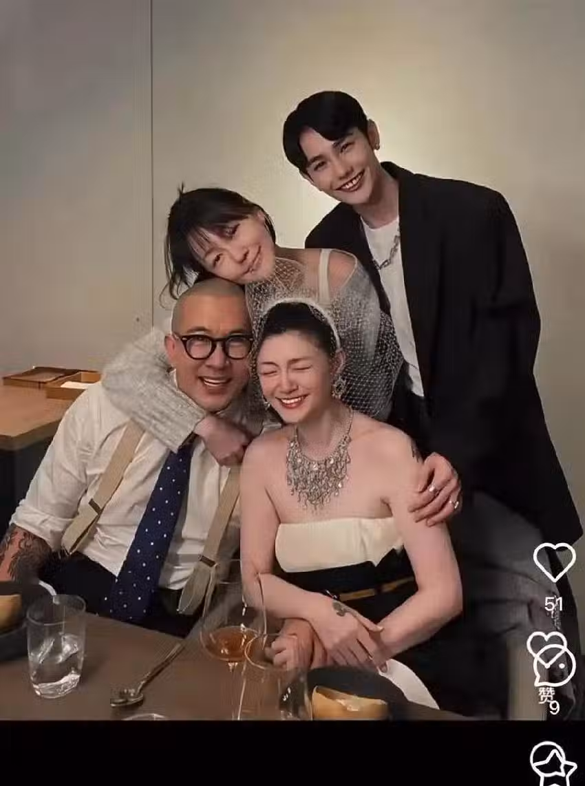 在照片中,大S一臉幸福地沉浸在新婚的喜悅中,而小S和具俊曄則以一種親密的姿勢擁抱在一起。