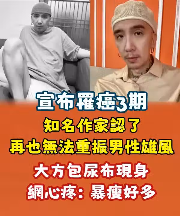 宣布罹癌3期,知名作家認了再也無法重振男.性雄.風,大方包尿布現身,網心疼:暴瘦好多
