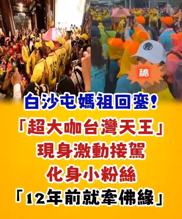 一年一度的宗教盛事「白沙屯媽祖繞境」,正如火如荼進行中,為期十天九夜的進香路線,因不固定、須向媽祖請示,年年吸引大批信眾跟隨!近日,白沙屯媽祖進香迴鑾中,一路上有許多民眾想一睹媽祖娘娘聖顏,包括明星藝人如葉蘊儀、謝忻、周蕙等人,沒想到,超大咖天王也現身其中、親自接駕,化身小粉絲驚訝連連、喜悅溢於言表!