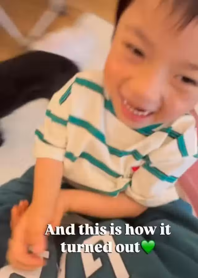 在短片中看到,被媽媽何雁詩抱在懷裡的Asher表面看起來是在笑,但其實表情還是能夠讓人感覺出他是不舒服的,並且雙手還更是有拍打媽媽的動作。