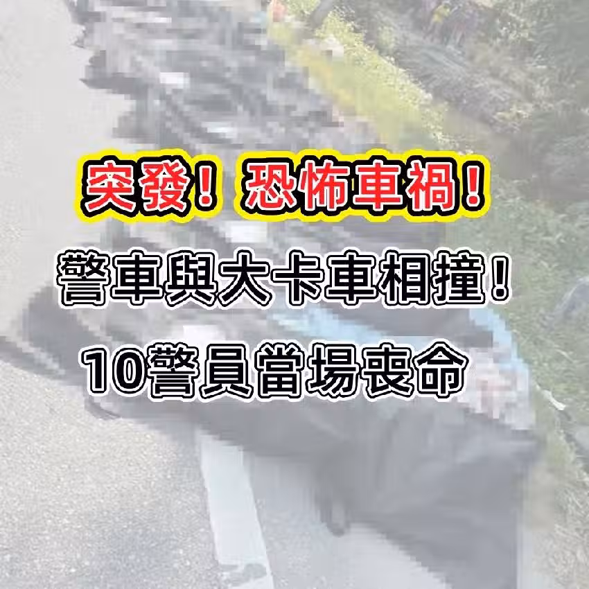 突發!恐怖車禍! 警車與大卡車相撞 10警員當場喪命