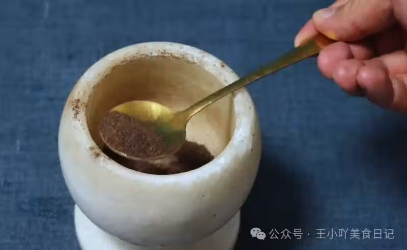 從密封容器中舀出一勺綠豆粉,倒入一個乾淨的碗中。然後,按照綠豆粉與陳醋1比1的比例,倒入適量的陳醋。用勺子將綠豆粉和陳醋充分攪拌均勻,讓它們充分融合在一起。攪拌的時候,可以順著一個方向攪拌,這樣可以讓混合物更加均勻。